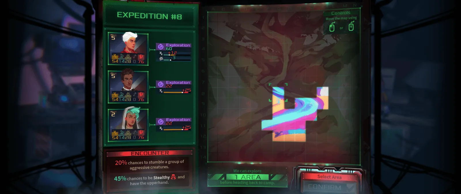 Экспедиции позволяют собирать припасы, открывать историю игры и запускать новые события. Однако они также подвергают вашу команду опасности со стороны врагов и суровых условий окружающей среды. Сражения ведутся с использованием пошаговой тактической системы – где расположение вашей команды и то, как вы используете их способности, имеют решающее значение. Победа или поражение влияет на остальную часть игры, влияя на то, что вы находите, насколько сильно ранены ваши члены экипажа и их общий дух.