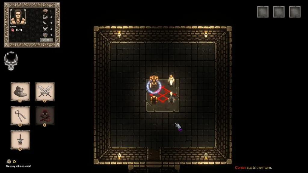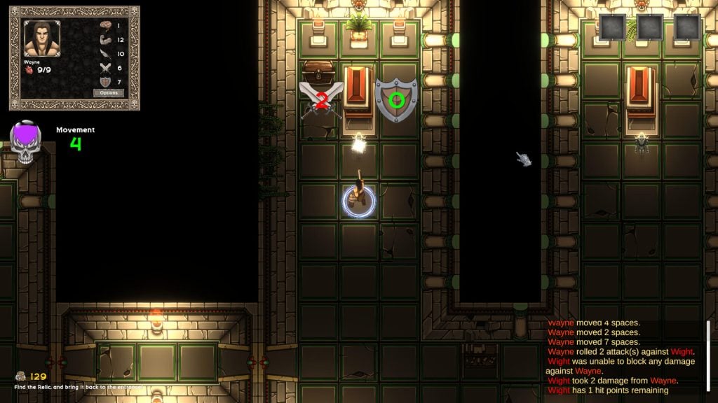 Бои проходят на четкой сетке, где важна дальность вашего обзора и атаки каждый ход. В игре используются скрытые ловушки, запертые двери и грамотно расположенные сундуки, чтобы создать интересные варианты выбора: играть ли безопасно или рискнуть ради большей награды?